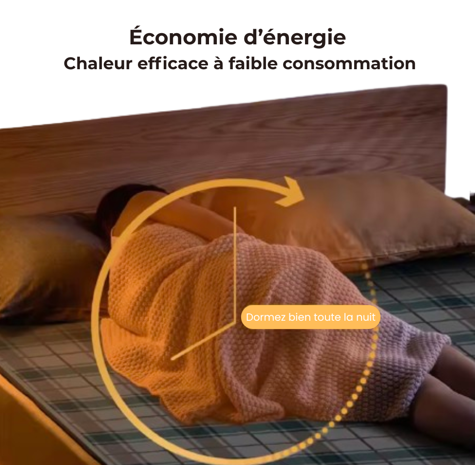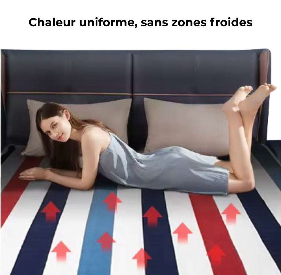 La couverture chauffe rapidement et diffuse une chaleur uniforme.