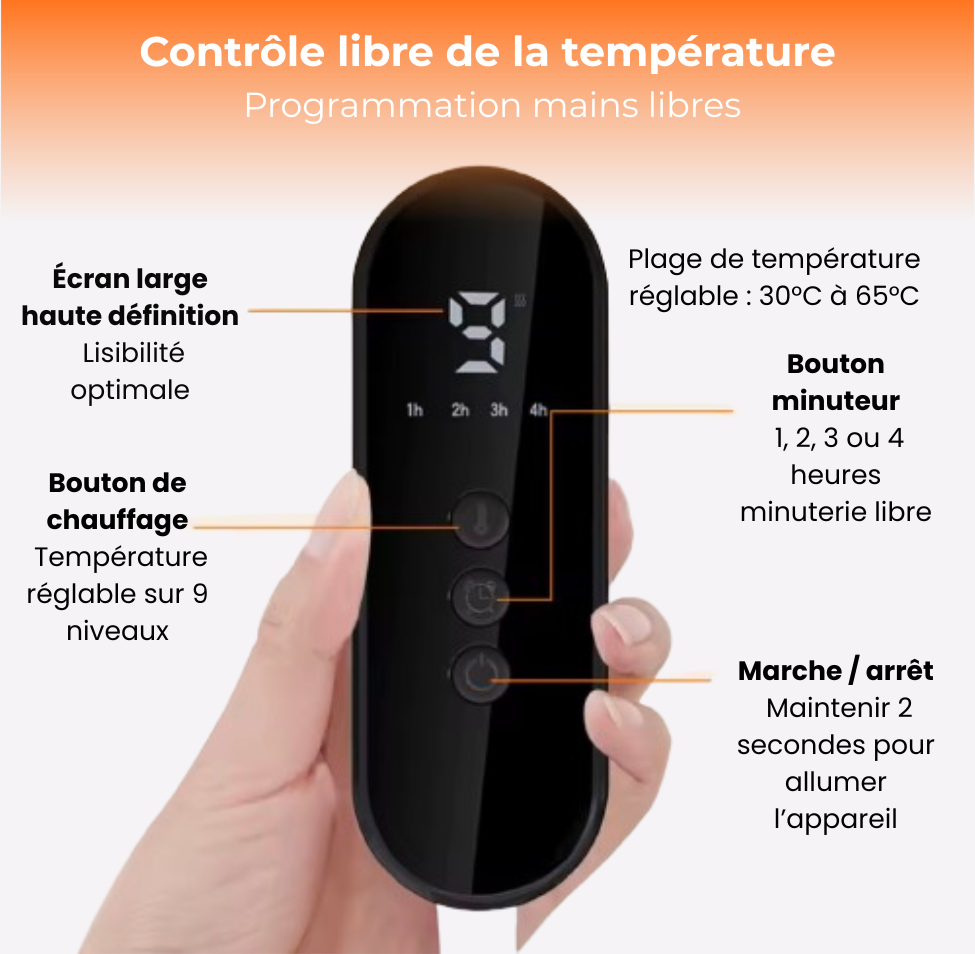 Le chauffe-pieds atteint sa température optimale en quelques minutes seulement.